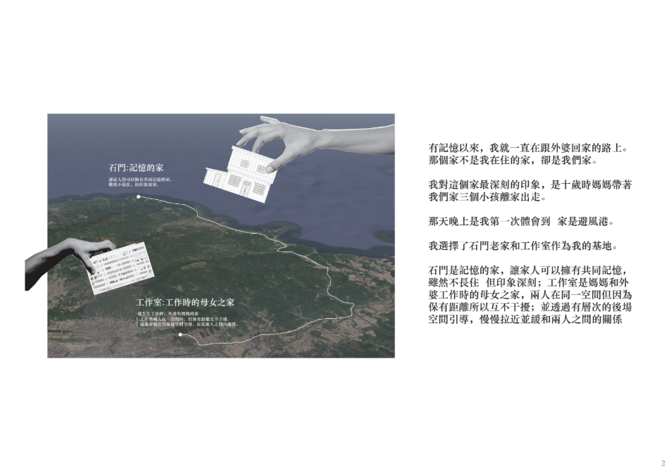 我嘗試以空間的流動與關係的連結為核心,藉由多重歸屬地的重塑,探索家庭空間的更多可能,重新構築家的本質。
