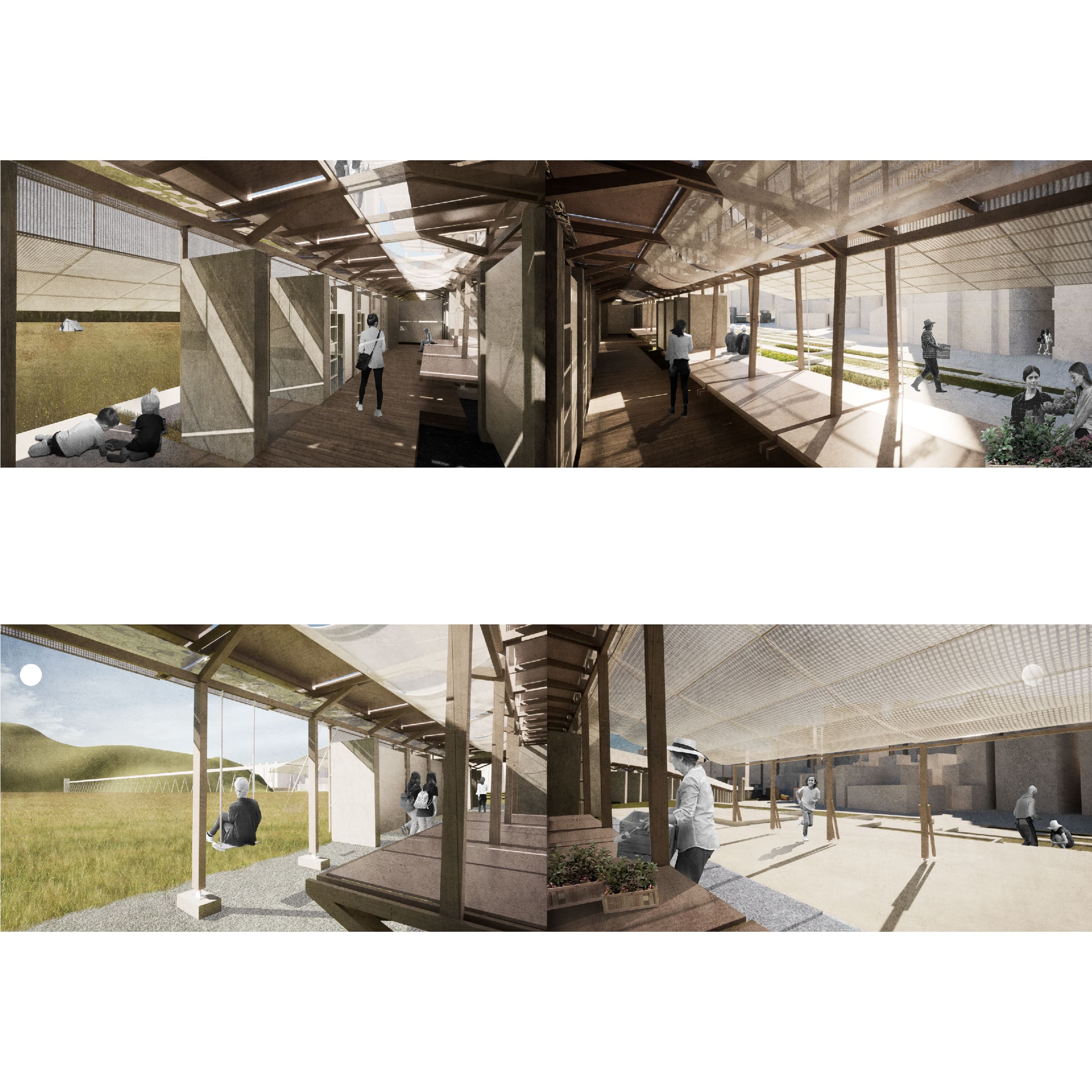 The military dependents’ village inside the city has yet to be relocated. The design utilizes traditional agricultural practices within the settlement. The blank spaces between the city walls are transformed into a linear greenhouse, redefining the disappeared outer wall and turning it into a container wall that can enclose agricultural activities and self-sustaining cycles.