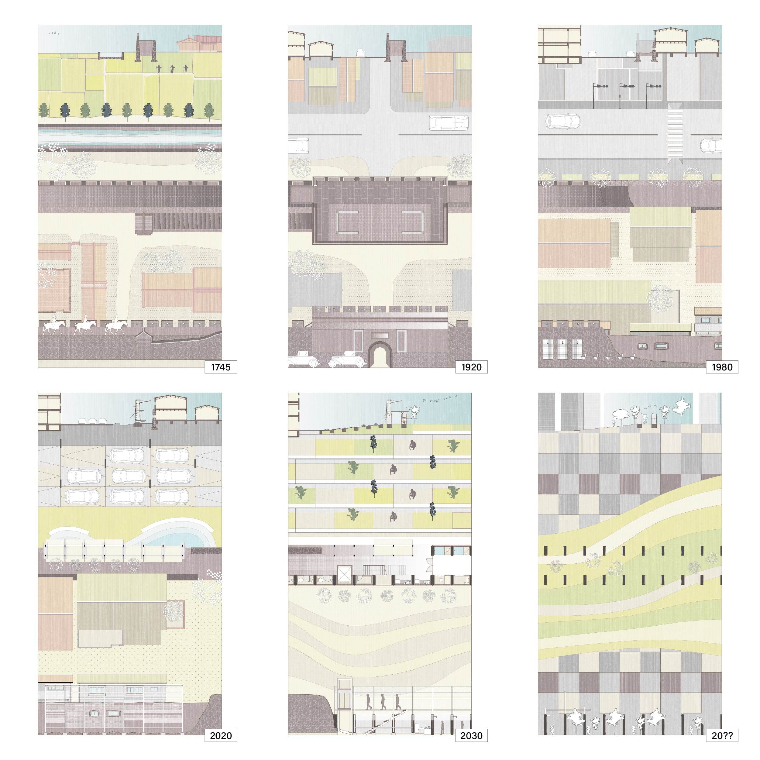 A continuous urban boundary responding to environmental changes, projecting the evolution of the boundary over the next thirty years by referencing the past three hundred years of the old city wall’s adaptation to its environment.