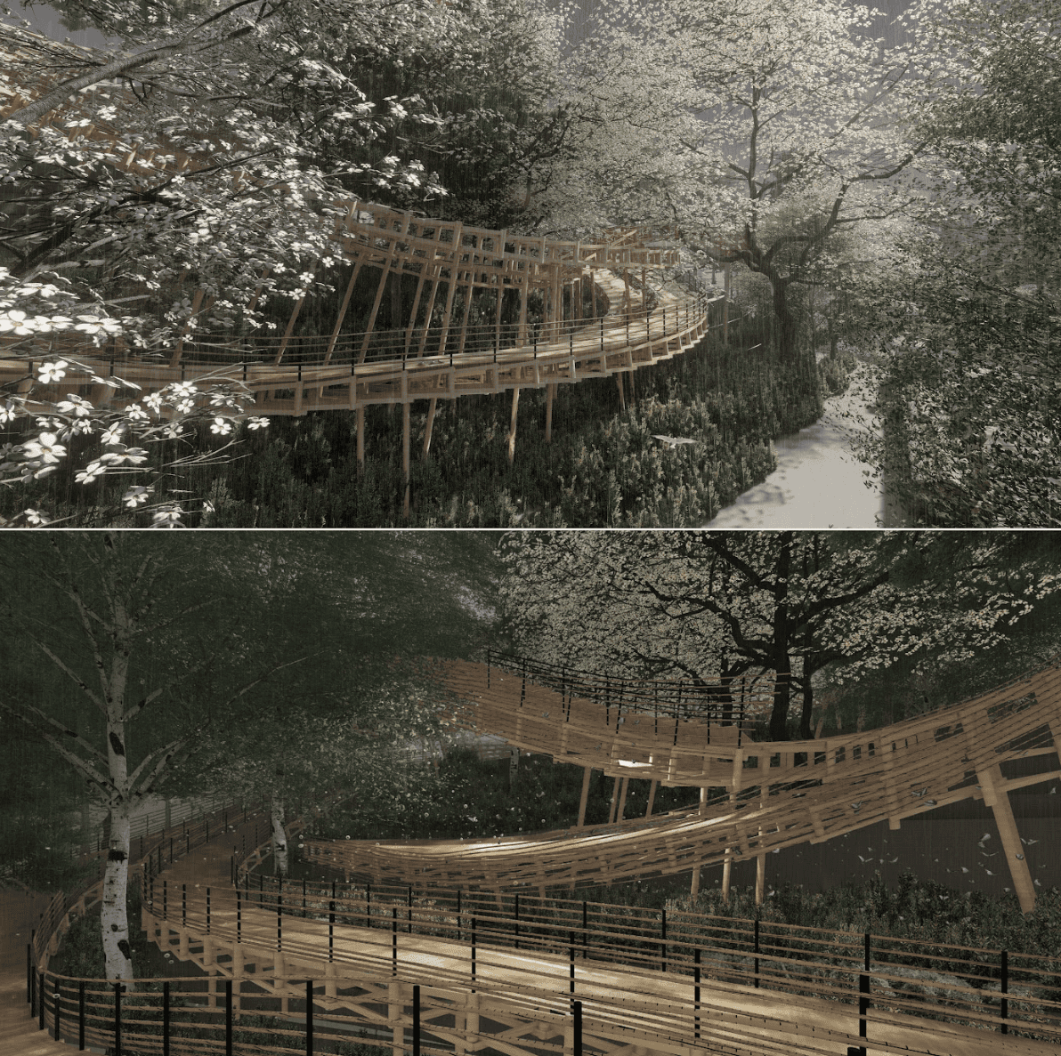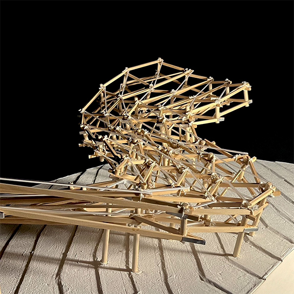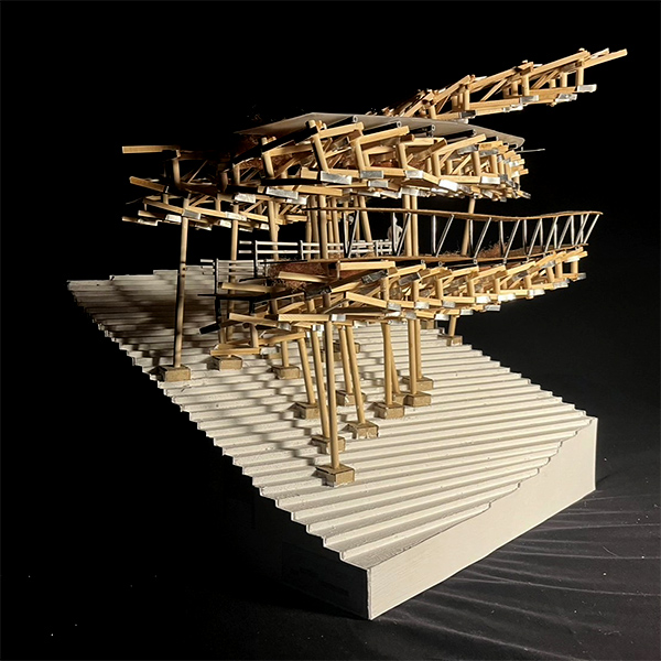 如果一位青年要在山區中建構建築,這樣的建築會因應環境,以流動的形式觸碰環境,且在山區施工上也會遇到許多的挑戰,傳統工法的應用並不適用於此,而我們如何從傳統工法中找尋可能性,運用當代的方式,如數位設計,介入環境。