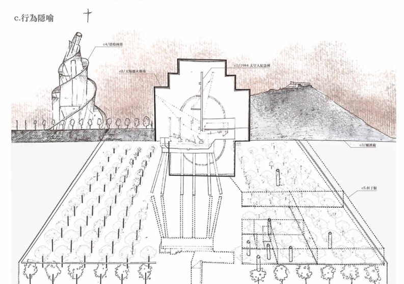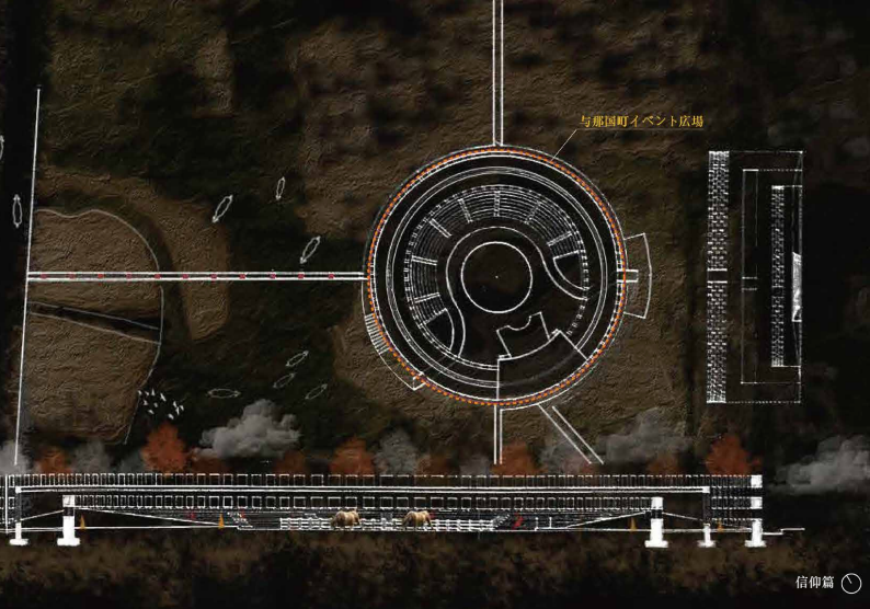 以太平洋沉沒的姆大陸傳說為起點,設計尋徑至日本西端邊境的與那國島。島民獨有的農漁產業與祭典儀式編織成日常生活,逐步形塑出自成一格的構築語系。以「生活文明」為脈絡,探討島嶼與失落大陸之間的潛在連結,鋪陳一種未來考古的伏筆。