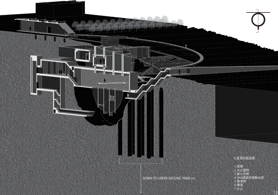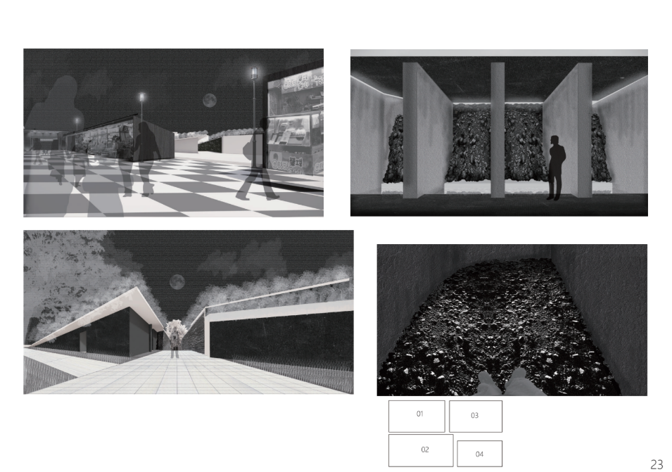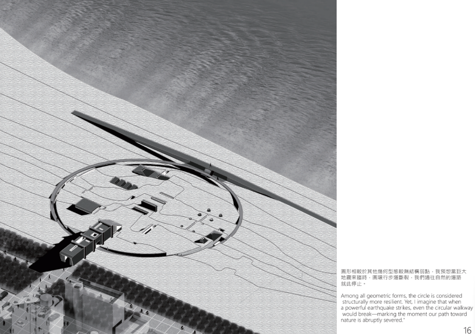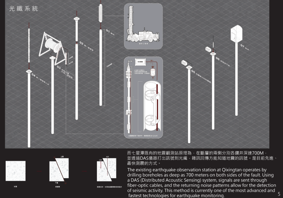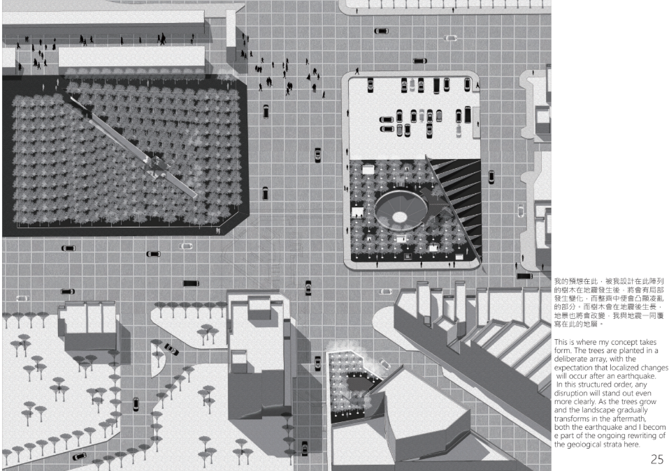 At Qixingtan, where a fiber-optic seismic observatory already exists, I propose a Seismic Observation Station + Visitor Center, an artificial intervention within nature. At Dongdamen, I introduce a Public Park + Underpass, embedding natural elements into an artificial landscape. Qixingtan embodies immediate, bodily perception of seismic activity; Dongdamen, a design rooted in deep time and collective urban memory.