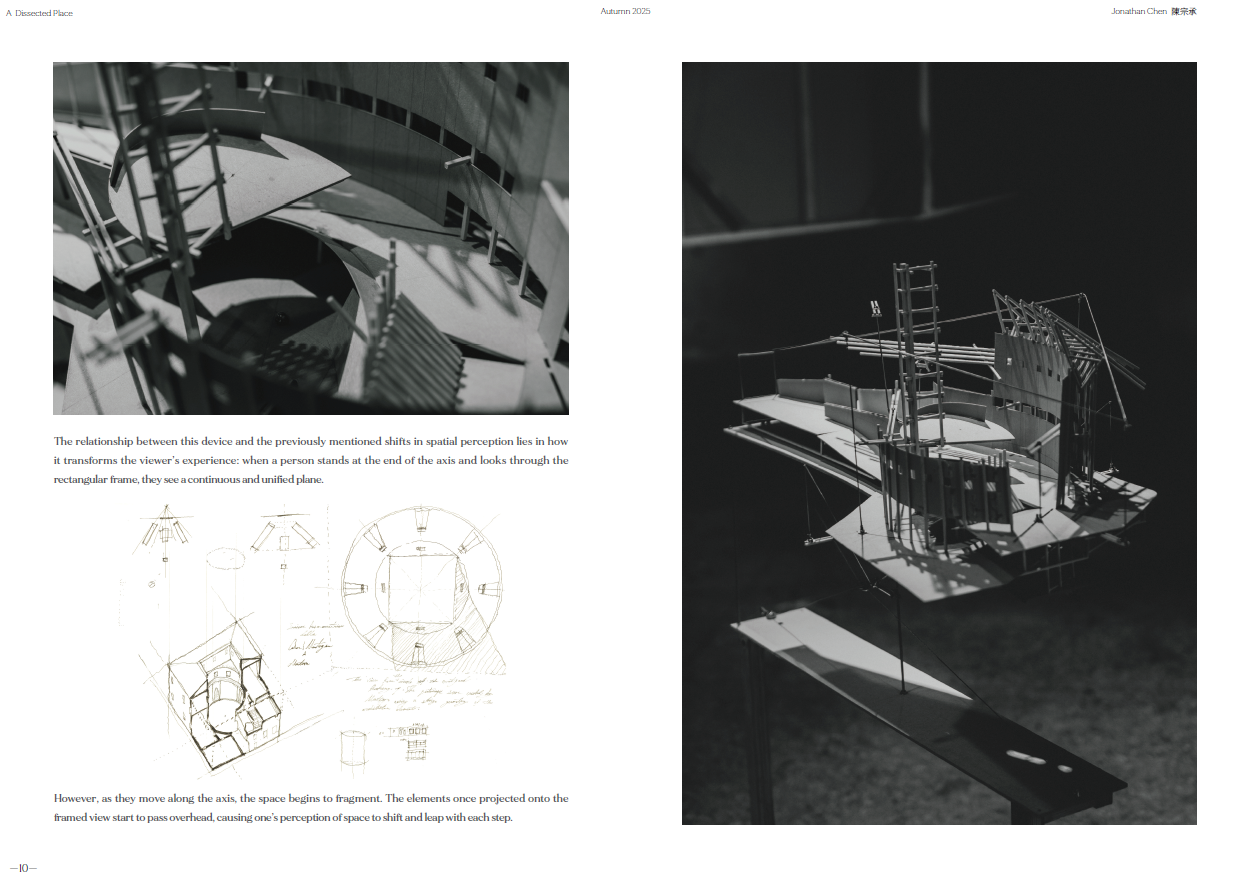 Now, through the perspective machine and my movement in Siena, I map fleeting moments where depth projects invisible structures—where reality and imagination overlap.At Hsinchu’s Tiangong Temple plaza, sloped ground, tilted axes, and fragmented architecture shape a new spatial language. The forgotten stage returns; the colonnade reconnects with life.This is a reflection on linear perspective—a reconsideration of Western spatial vision and the shifting fabric of Taiwanese urbanism, in search of the emotion I once felt in Siena.