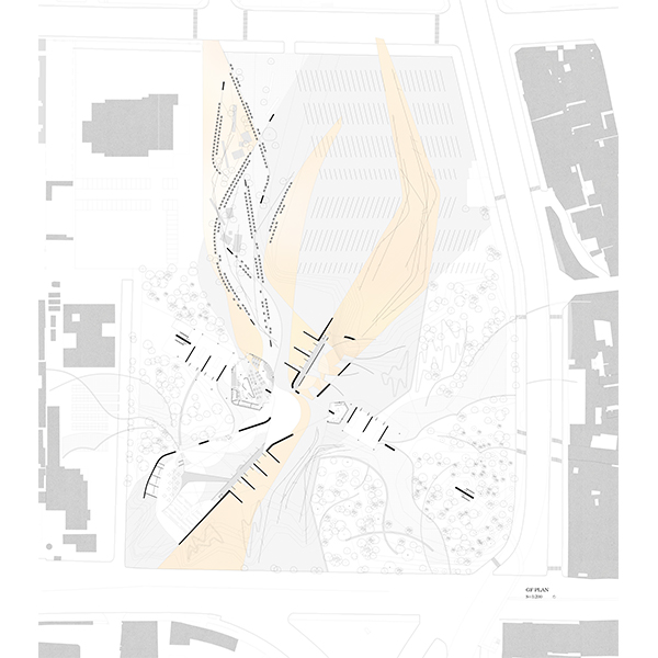 Whether at work or at home, everyone plays a role in society. Daily life is invisibly constrained like a machine, and the daily routine is just moving between two points. I tried to disturb these unchanging life trajectories by combining the Hsinchu Primary Substation, which is located at the midpoint of the commute, with the sports park and opening it to the city, so that people can have a moment to escape from the normal life during their daily commute and enter my design to enjoy the freedom.
