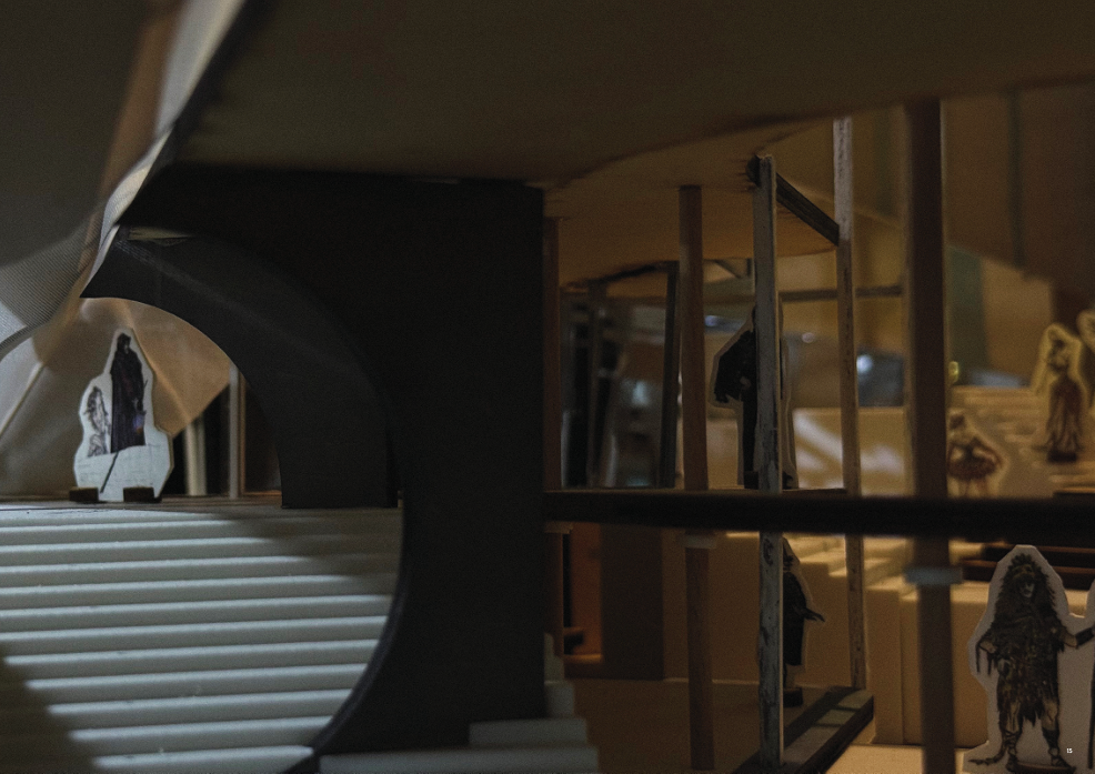 Ultimately, creating an immersive, sequential environment where the audience’s movement and perception are integral to the narrative. This approach challenges the static nature of proscenium theatres, proposing instead a re-choreographed play that encourages a participatory and dynamic experience with the built environment. By reinterpreting historical techniques through a contemporary lens, this thesis argues for the continued relevance of perspective drawing as a means of redefining human engagement with designed space.