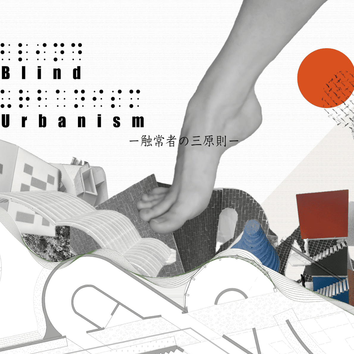 隨著視覺技術的進步,在只能利用導盲設施幫助視障者的視覺主義社會中,少數的他們該何去何從呢?面對這樣的問題,我將主要依賴觸覺生活的視覺障礙者稱為「觸常者」,並以觸覺為基礎來建構城市。我在盲校從聽覺和壓力的角度進行了研究,並通過在上町台地進行的素描和拓印,從觸覺的角度重新審視了這座城市。基於這些研究,我提出了「觸常者的三大原則」,並以此為基礎,設計出不僅為觸常者,也為健全者提供全新空間的提案。